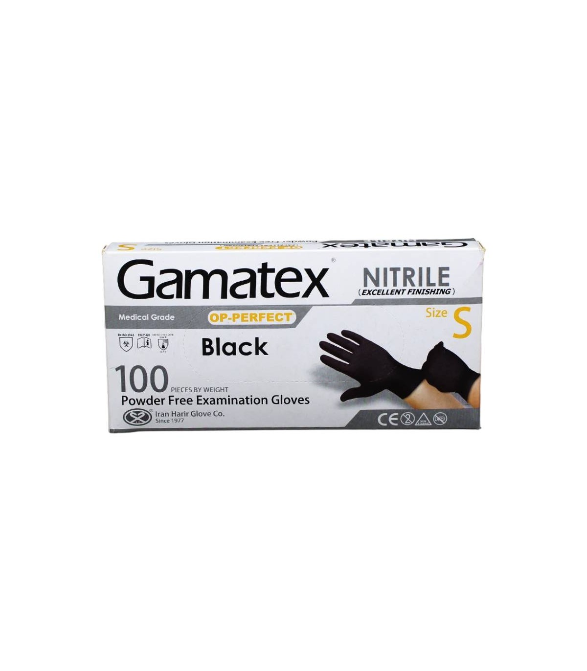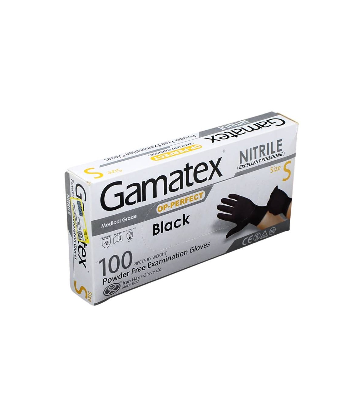 دستکش نیتریل مشکی گاماتکس (Gamatex) از مواد اکریلونیتریل (ACN) و بوتادین تولید میشود. این دستکش فاقدر پودر و لاتکس بوده و برای مصرف کننده حساسیت ایجاد نمیکند.دستکش مشکی نیتریل gamatex غیر استریل بوده و در جعبه های 100 عددی به فروش میرسد.این دستکش سیاه رنگ در سایزهای مدیوم و لارج تولید میشود.دستکش نیتریل مشکی گاماتکس از مقاومت بالایی در مقابل مواد روغنی و گریس برخوردار است.این دستکش نرم،سبک و روان بوده و در نتیجه دست کردن و درآوردن آن، بسیار ساده و راحت میباشد.